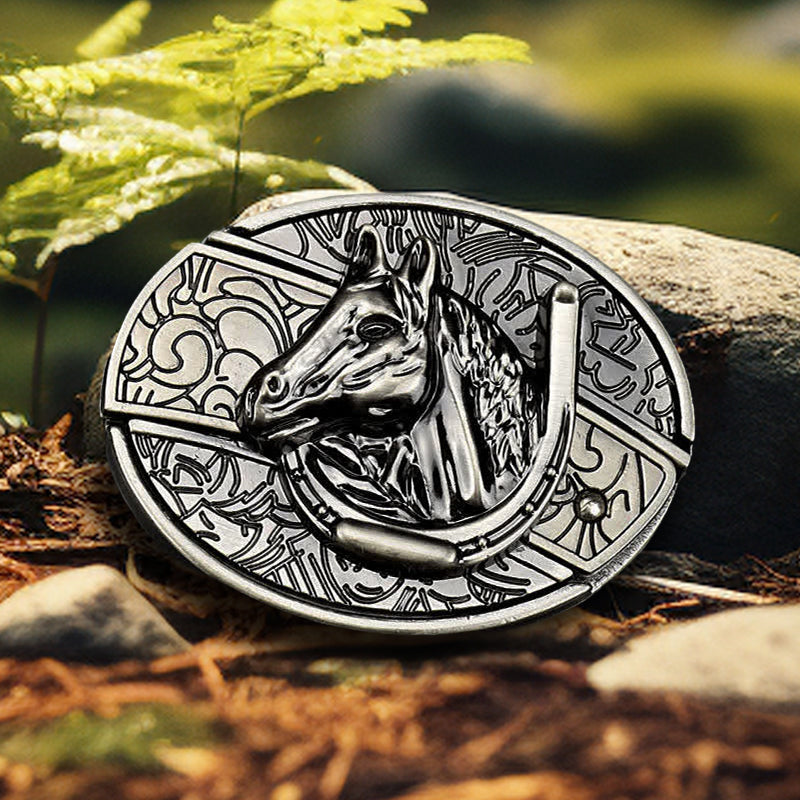Men's DIY Horse Head Hidden Folding Knife Leather Belt